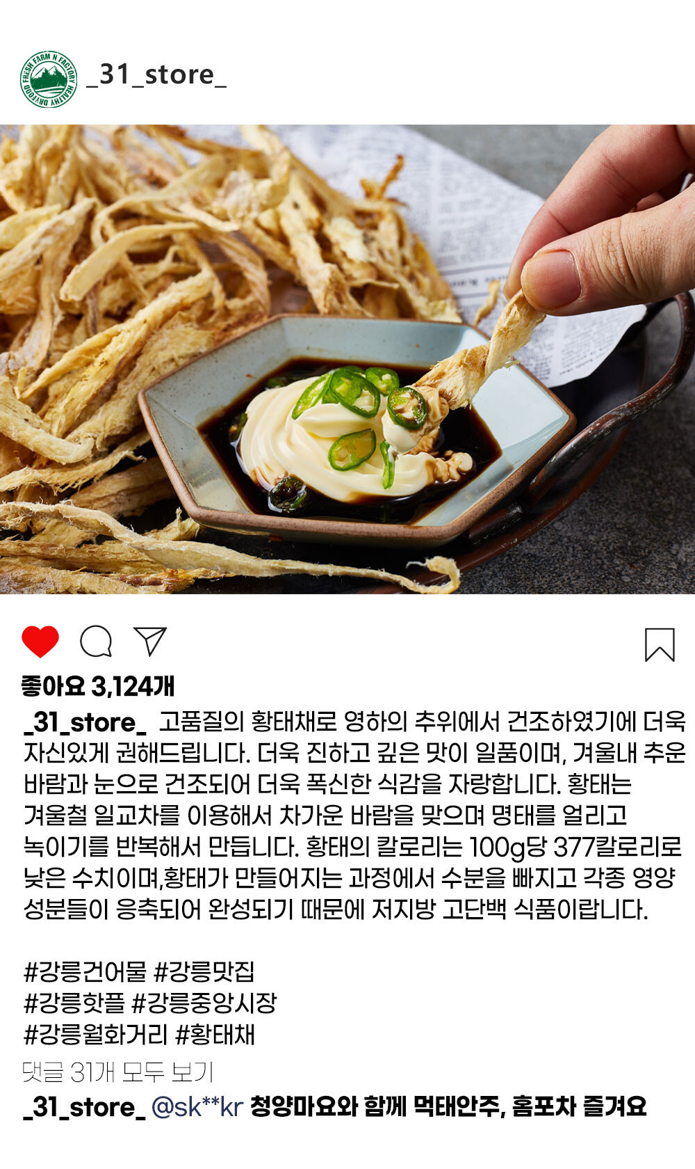 • 자연풍으로 정성껏 말린 상급 황태채입니다.