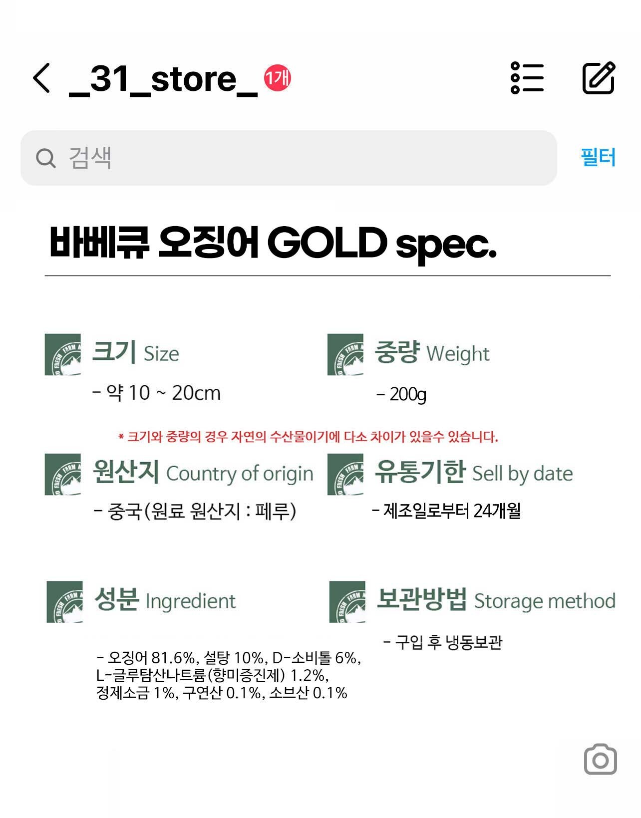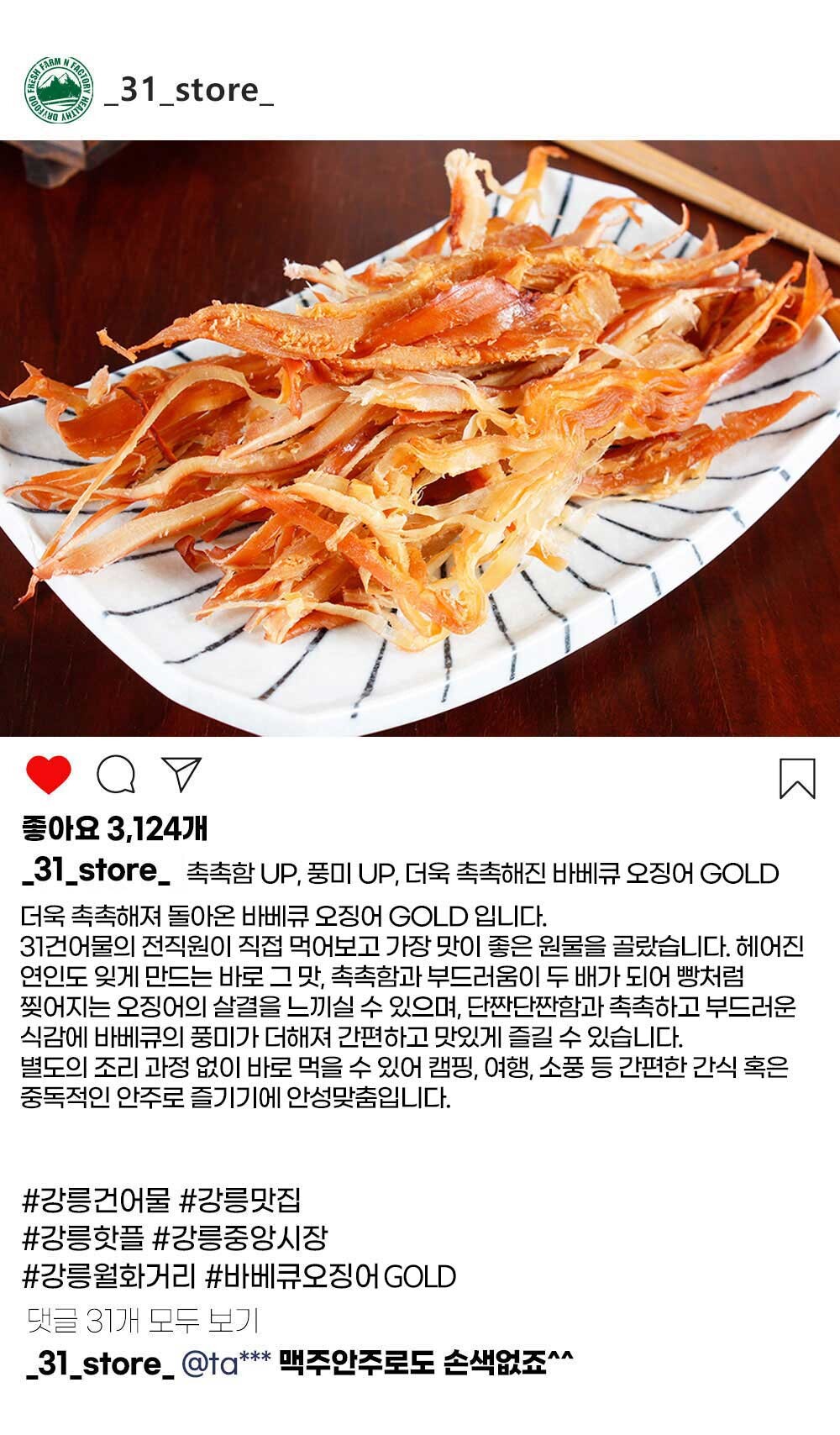 • 더욱 촉촉한 바베큐 오징어 GOLD (강릉31건어물 시그니쳐 상품) 상품번호 : 44270