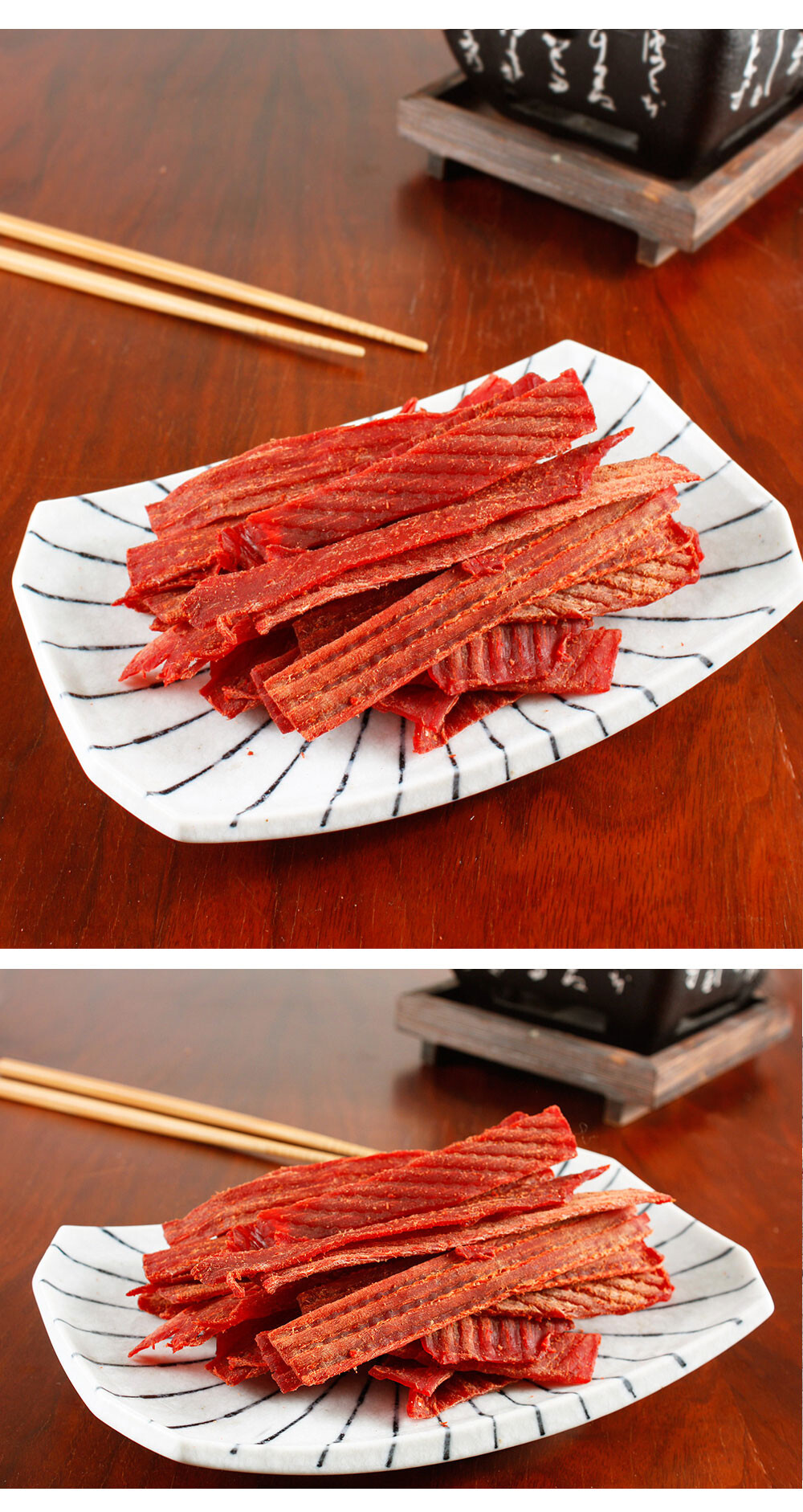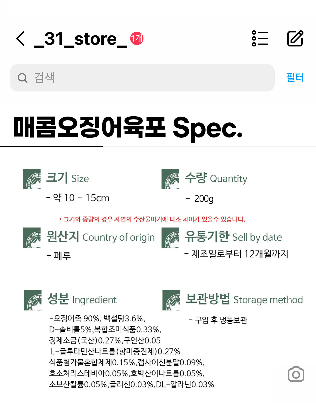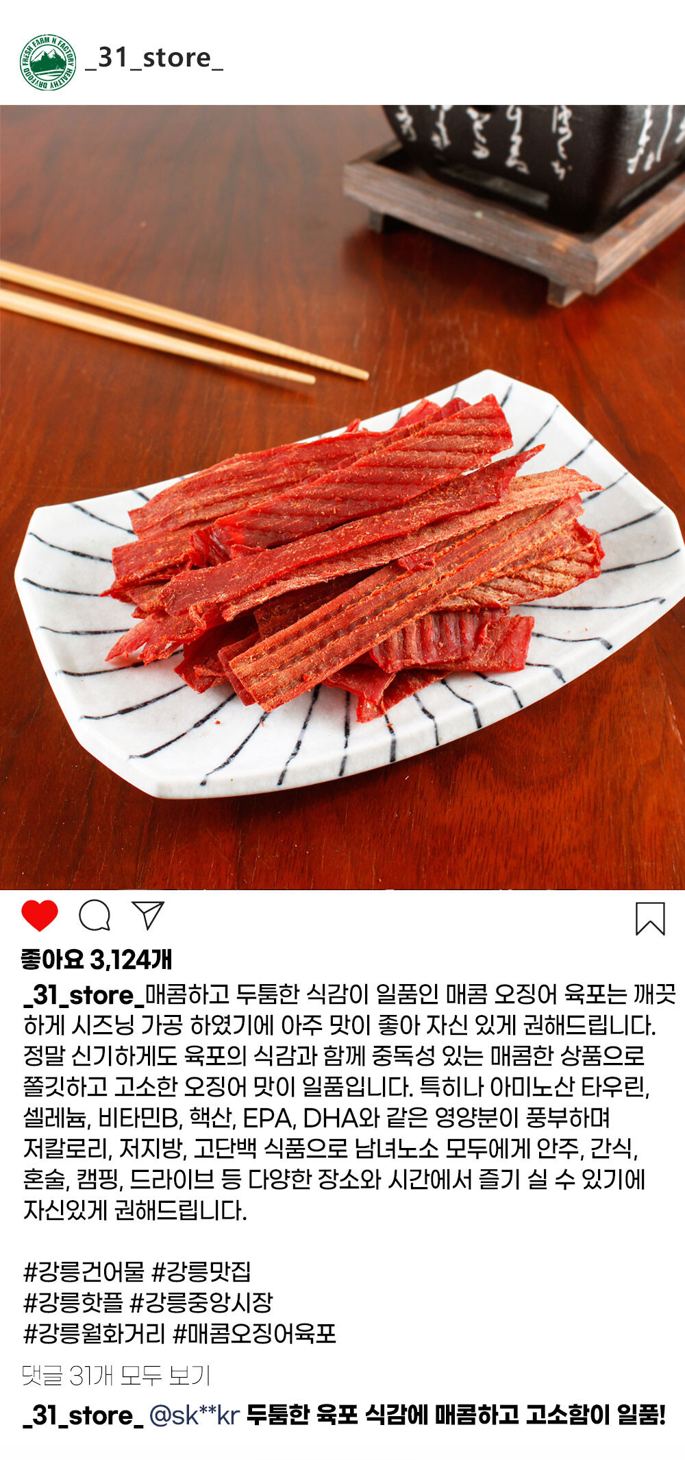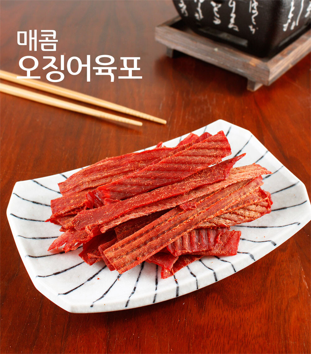 • 매콤한 시즈닝과 쫄깃한 육질이 일품인 매콤 오징어 육포입니다