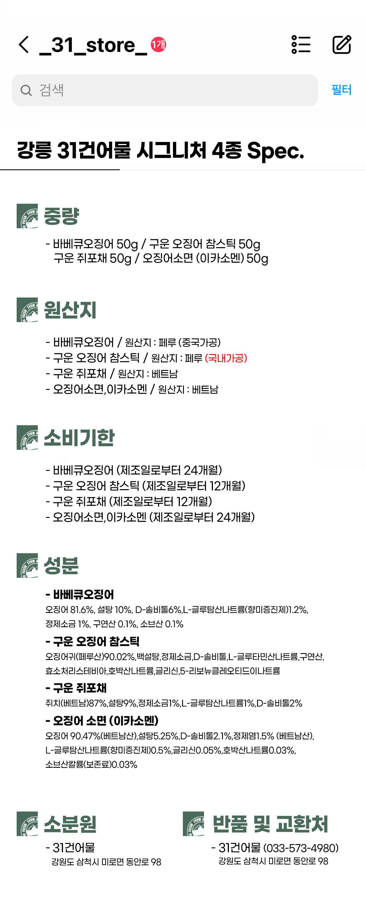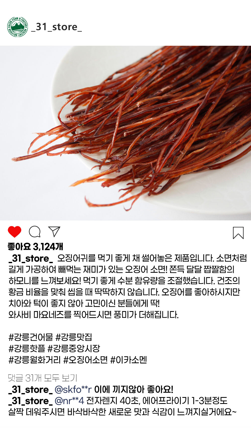 생산자 및 소재지 (수입품의 경우 생산자, 수입자 및 제조국) 생산자: 31건어물 (강원도 삼척시 미로면 동안로 98)