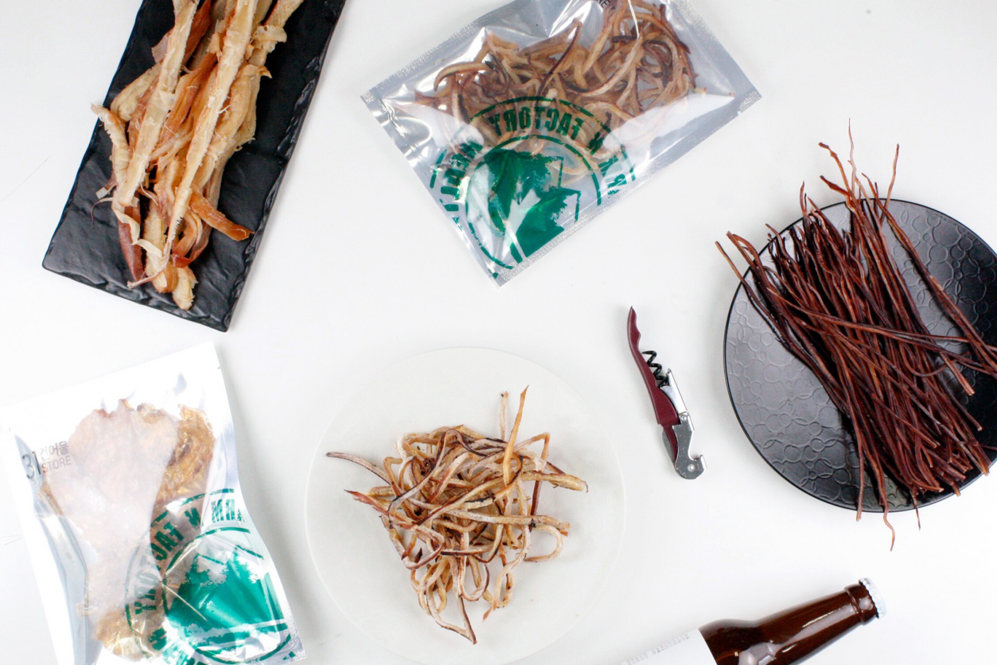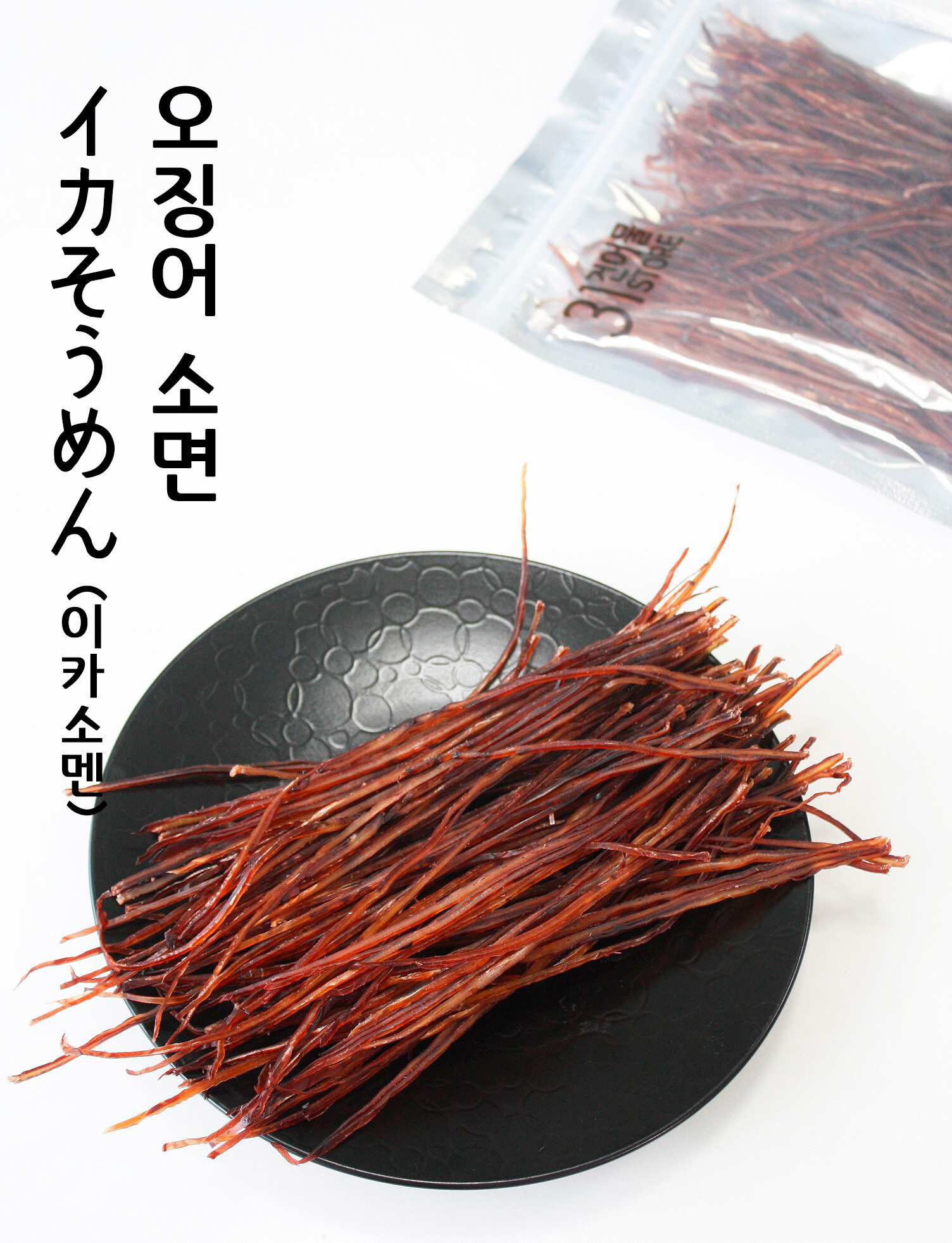 원재료명 (농수산물의 원산지 표시 등에 관한 법률에 따른 원산지 표시 포함) 및 함량 바베큐오징어: 오징어81.6%,설탕10%,D-소비톨6%,L-글루탐산나트륨(향미증진제)1.2%,정제소금1%,구연산0.1%,소브산(보존료)0.1%, 이카소멘: 오징어90.47%(베트남산),설탕5.25%,D-소비톨2.1%,정제염1.5%,L-글루탐산나트륨(향미증진제)0.50%,글리신0.05%,DL-알라닌0.04%,효소처리스테비아0.03%,호박산나트륨0.03%,소브산칼륨(보존료)0.03%, 구운참스틱: 오징어90.02%(페루산),백설탕(감미료)7.07%,정제소금(국내산)1%,D-소비톨1.2%,:L-글루탐산나트륨(향미증진제)0.4%,구연산0.15%,효소처리스테비아0.01%,호박산이나트륨0.03%,글리신0.08%,5'-리보뉴클레오티드이나트륨0.04%, 구운쥐포채: 쥐치87%(베트남산),설탕,D-소비톨,L-글루탐산나트륨(향미증진제),정제소금