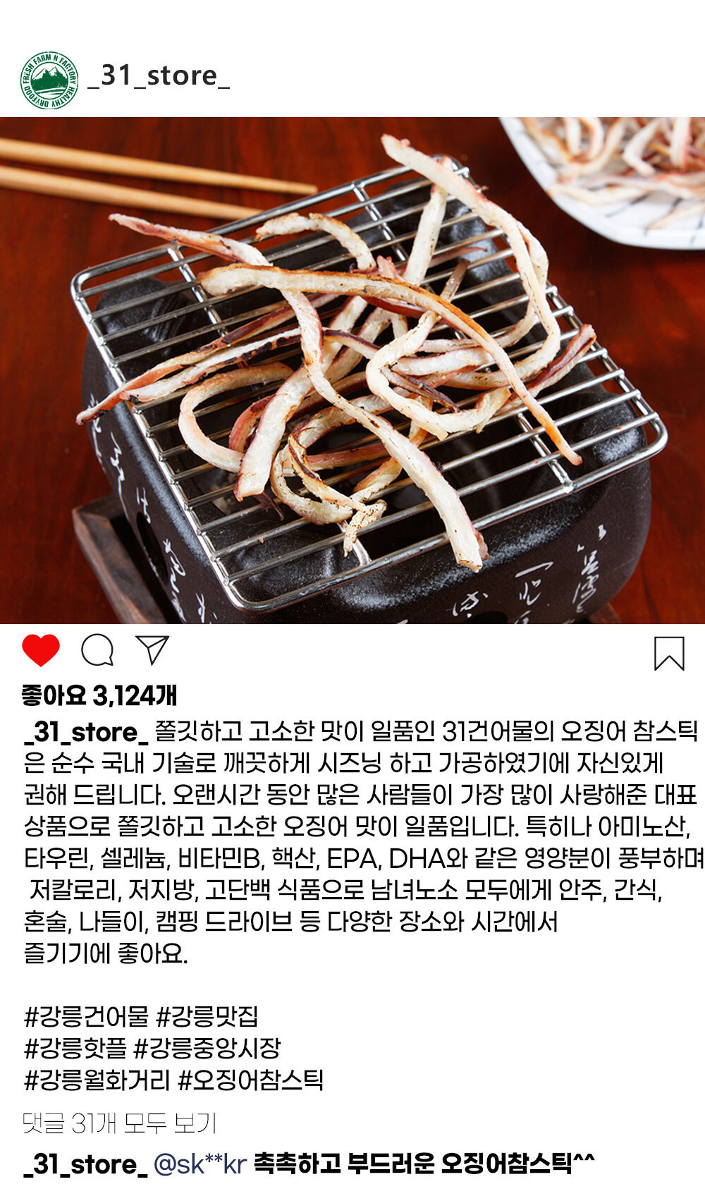 • 국내에서 가공한 쫄깃한 오징어 참스틱, 별도의 조리 없이 맛있게 드실 수 있습니다