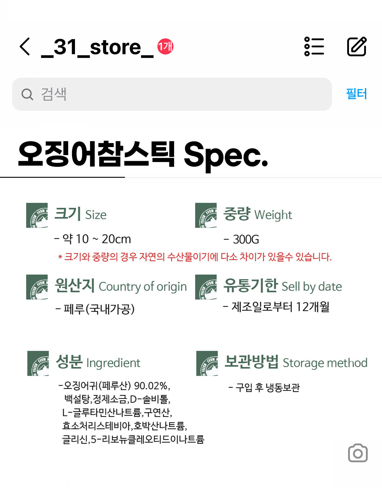 생산자 및 소재지 (수입품의 경우 생산자, 수입자 및 제조국) 소분원: 31건어물, 원산지: 페루 (국내가공)