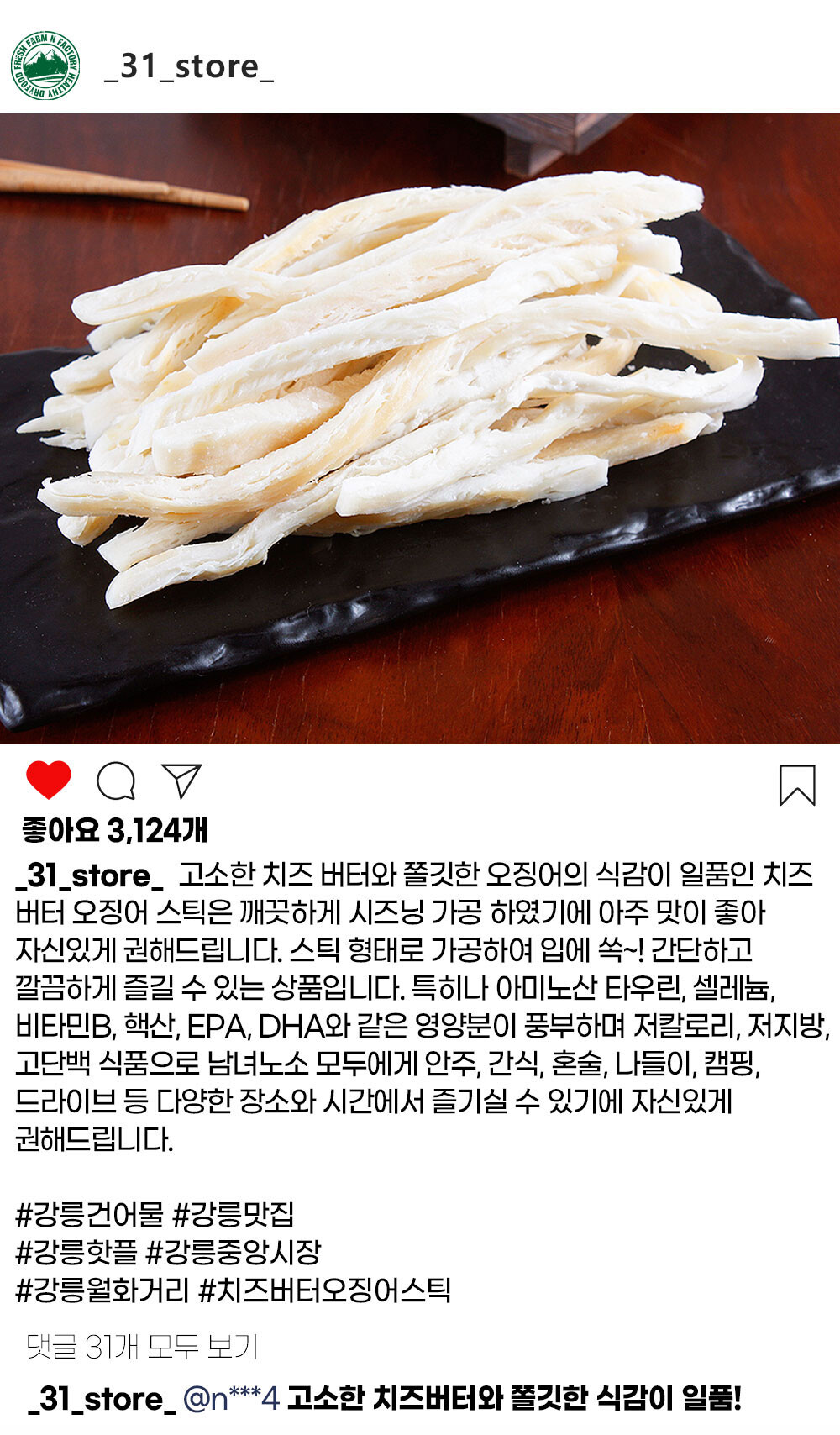 • 치즈와 버터의 풍미가 살아있는 시즈닝 오징어입니다.